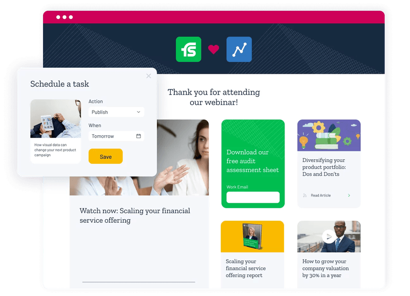 That makes it useful when you already have a lot of content. Instead of publishing one-off assets, you can package them into more focused buyer journeys.